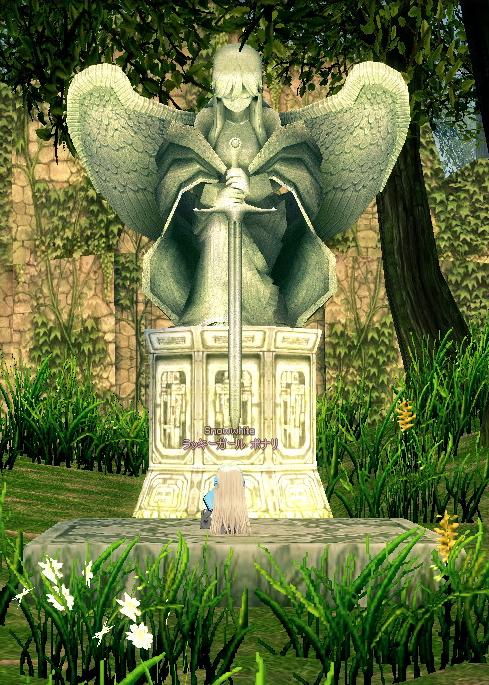 たどり着いた女神像の前で思案中。